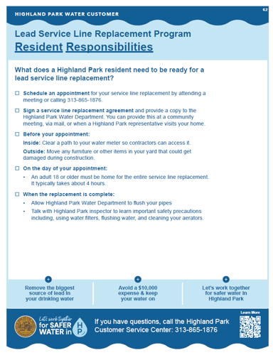 Please understand that if you choose to not participate and have your water lines replaced, it can result in your water service being terminated. For questions, please contact the water department at 313.865-1876.