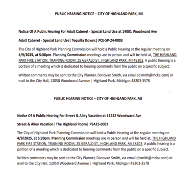 HIGHLAND PARK SCHOOL DISTRICT